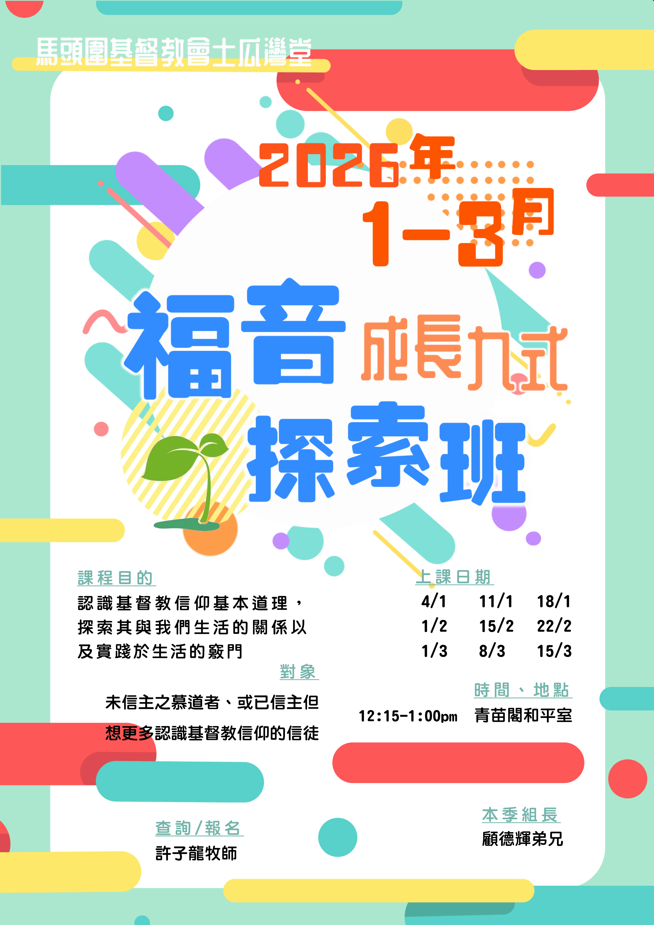 成人教育部:2026年1-3月福音探索班